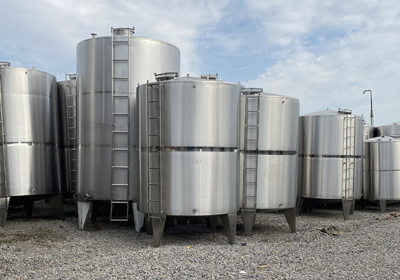 Wine and whiskey aging tanks, milk receiving and temporary storage tanks |